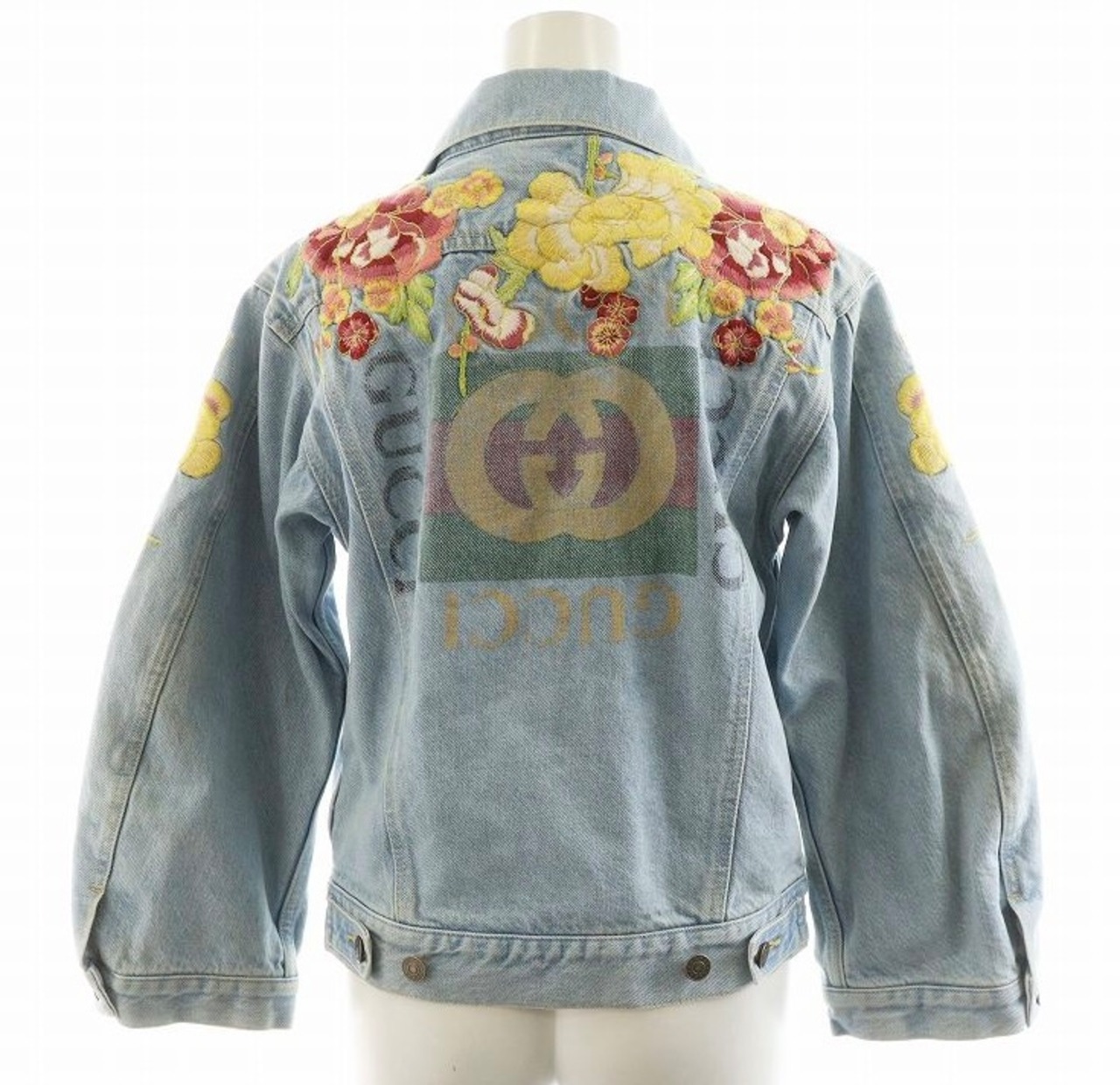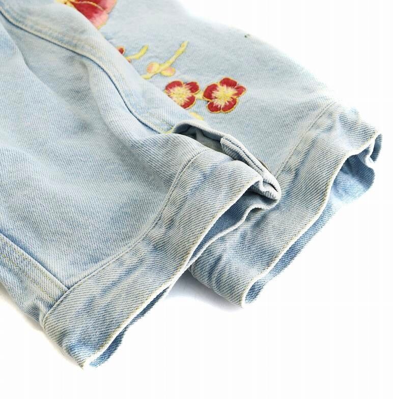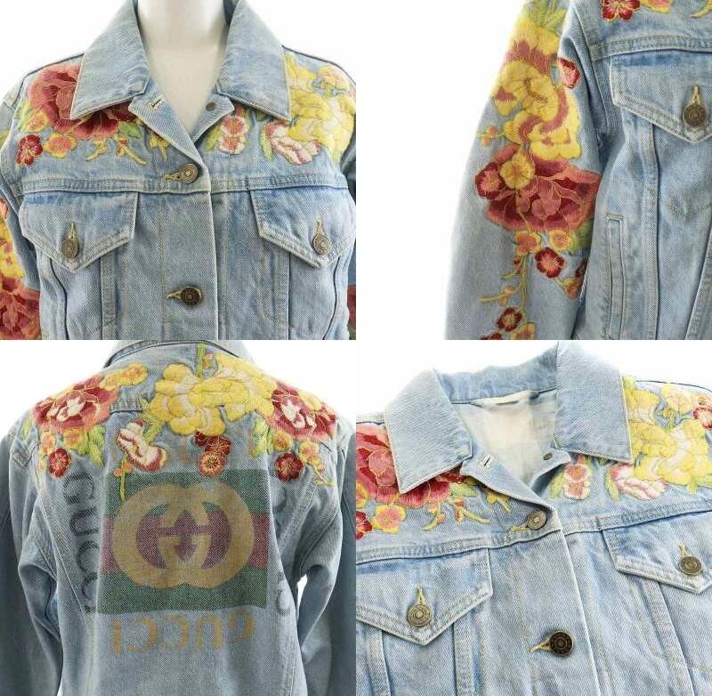 GUCCI デニムジャケット 花刺繍 裏地チェック柄 レディース 38