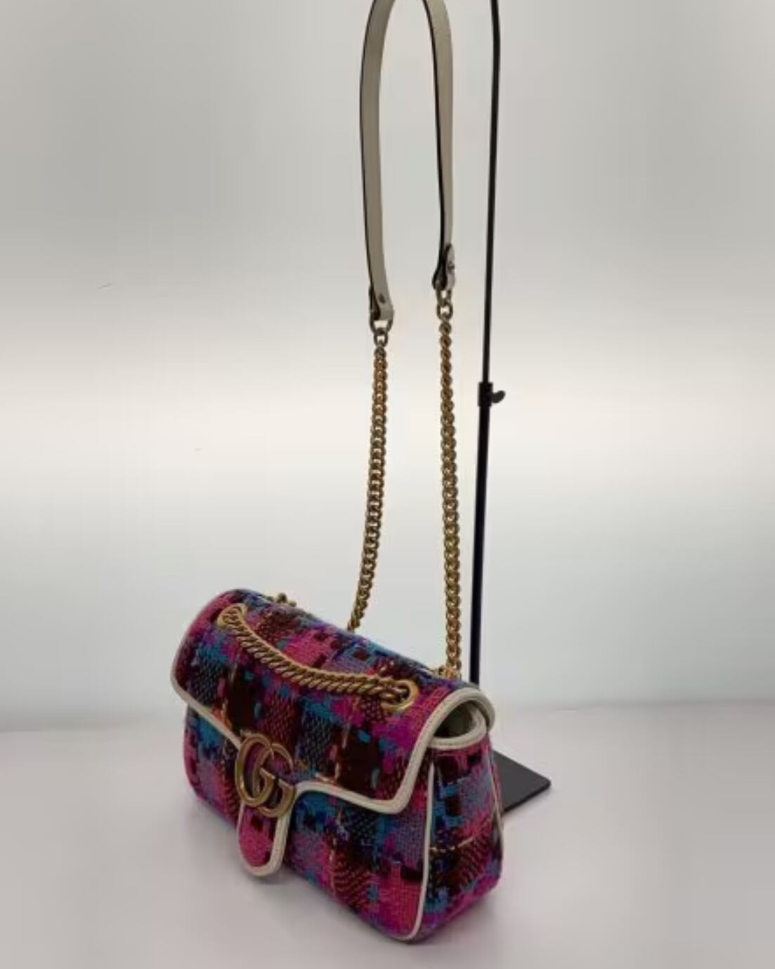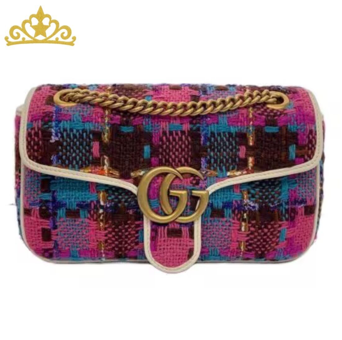 GUCCI GGマーモント ツイード ミニ ショルダーバッグ レディース グッチ