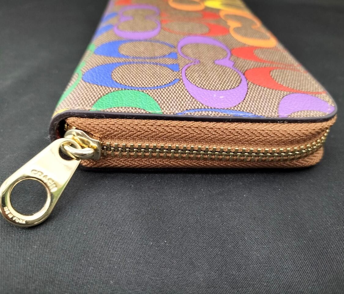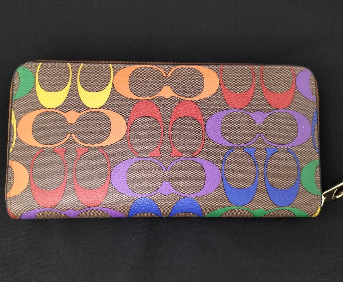 COACH シグネチャー マルチカラー ラウンドファスナー ジッピーウォレット レディース 長財布